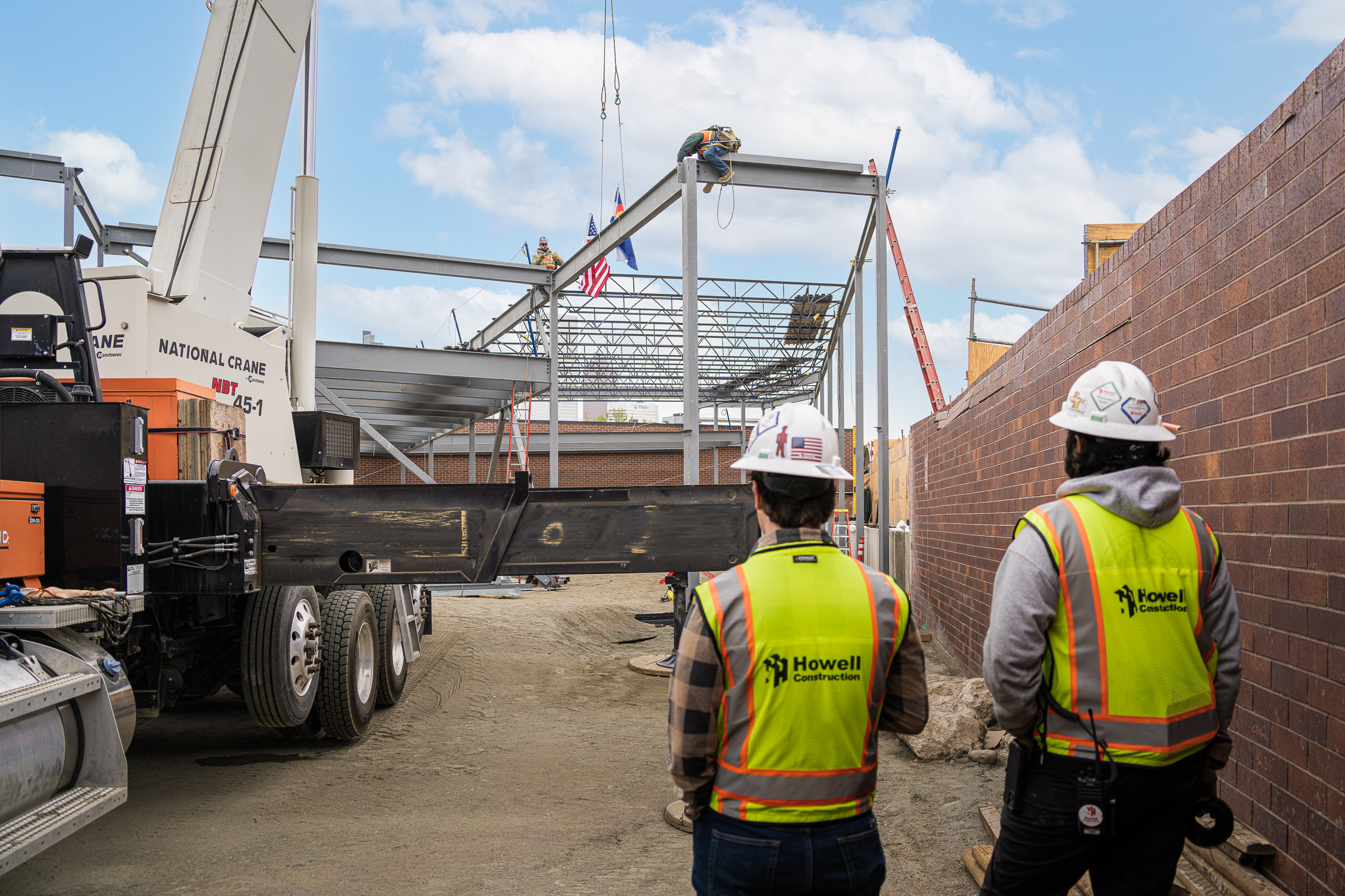 The ceremony celebrated the placement of the final structural element for a 9,484 SF addition as part of a broader 59,900 SF renovation of the nearly 50-year-old facility. Once complete, the updated building will house all of CCD’s Health Sciences programs in a single location, improving student access, enhancing collaboration, and creating operational efficiencies across programs.